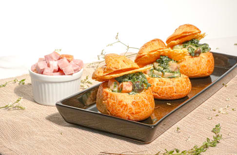 ชีสชูว์ไส้ครีมเบคอนผักโขมโขม (Bacon Spinach Cream Sauce Choux)