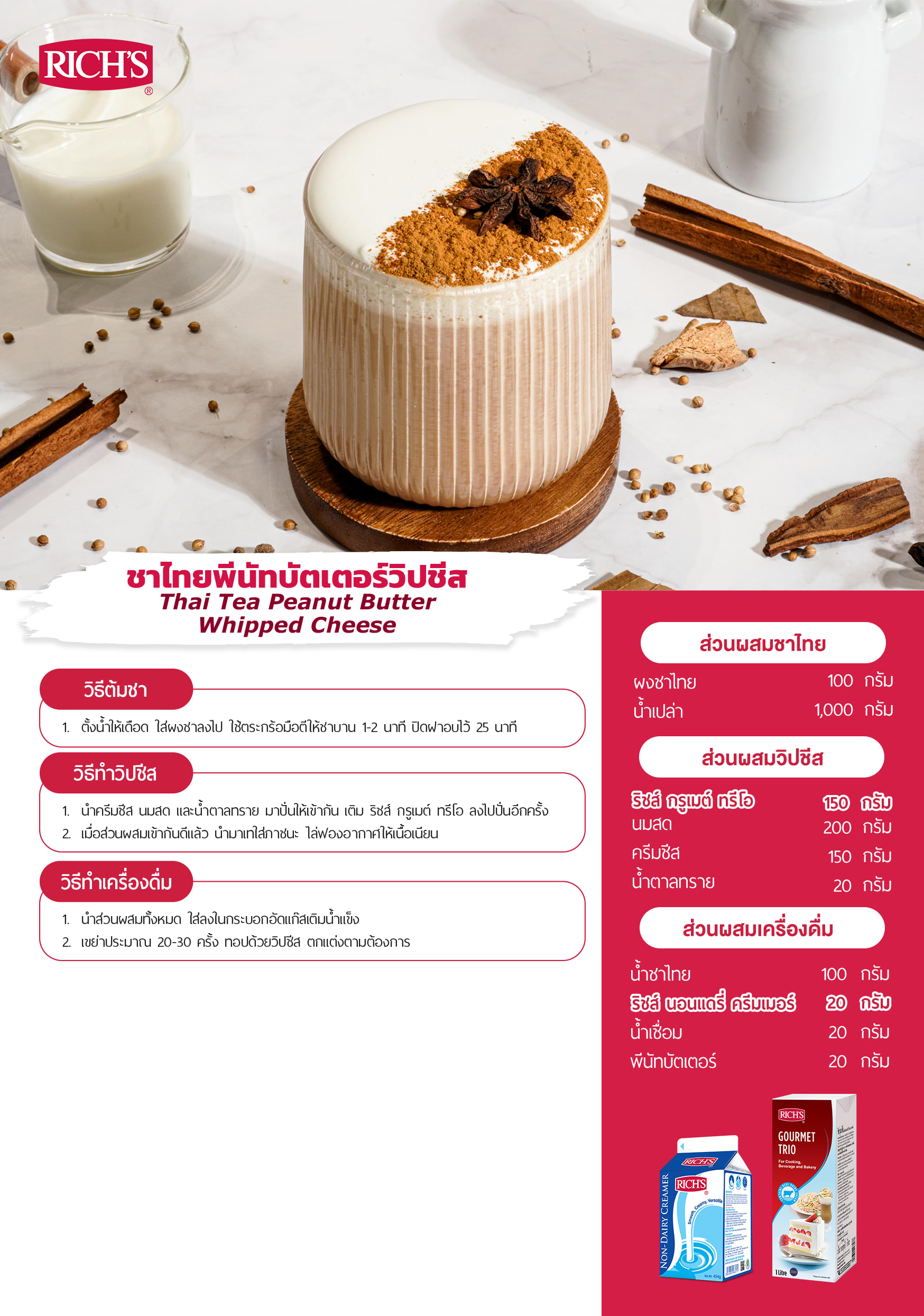 ชาไทยพีนัทบัตเตอร์วิปชีส (Thai Tea Peanut Butter Whipped Cheese)