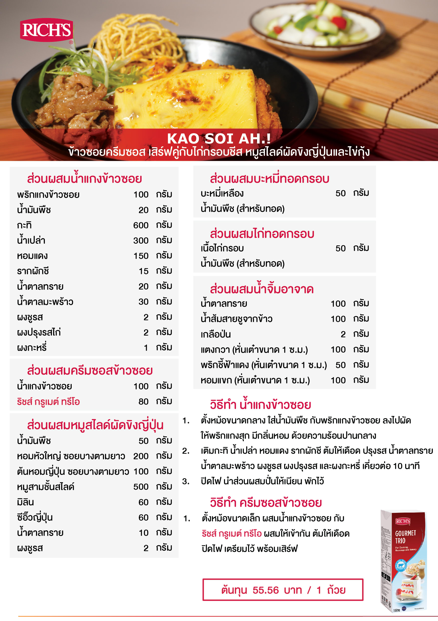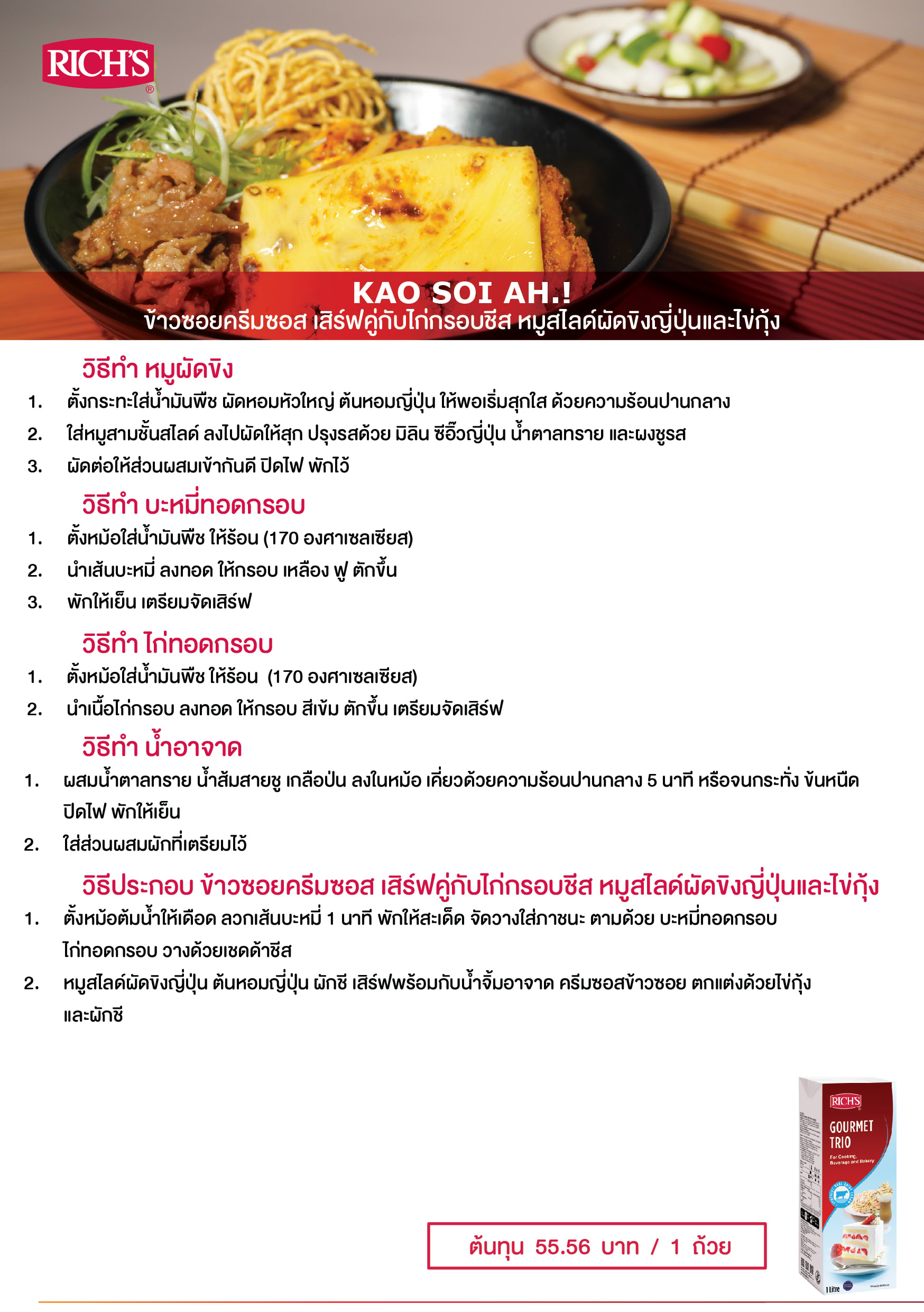 เสิร์ฟคู่กับไก่กรอบชีส หมูสไลด์ผัดขิงญี่ปุ่นและไข่กุ้ง
