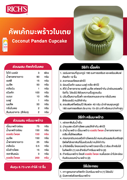 คัพเค้กมะพร้าวใบเตย