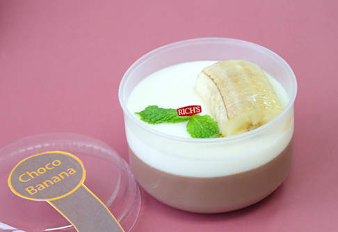 พุดดิ้งรสชาติขนมหวาน อย่างช็อคโกบานาน่า ในถ้วยเค้กพร้อมรับประทานสำหรับ 1 ที่ ขายง่ายและส่งสะดวก สามารถใช้เป็นของหวานพักเบรคได้