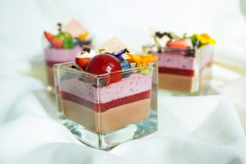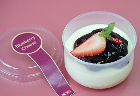 พุดดิ้งรสชาติขนมหวาน อย่างบลูเบอรี่ชีสพาย ในถ้วยเค้กพร้อมรับประทานสำหรับ 1 ที่ ขายง่ายและส่งสะดวก สามารถใช้เป็นของหวานพักเบรคได้