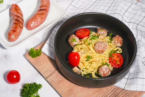 พาสต้าแสนอร่อย พร้อมครีมกับไส้กรอก กลิ่นหอม หน้าตาน่ารับประทาน สูตรพิเศษจากเชฟมากประสบการณ์ เพียงนำเส้นสปาเกตตี ผสมกับซอสครีมไส้กรอกให้เข้ากัน