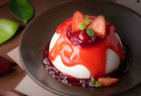 พานาคอตต้า แยมสตรอว์เบอรี่ Panacotta Strawberry Sauce พานาคอตต้า นุ่มนิ่ม อร่อยละมุน เมนูสุดคลาสสิก ที่ทำขายได้ทุกฤดูกาล