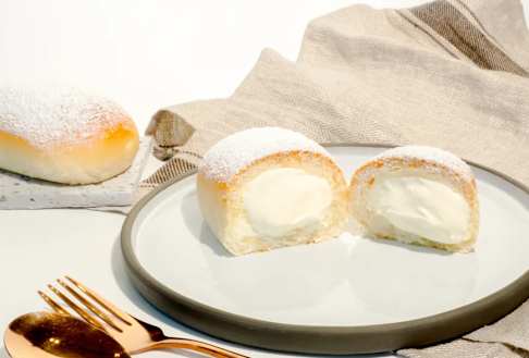 ขนมปังธัญพืชสอดไส้ครีมคัสตาร์ดทูโทน ไม่ว่าจะเป็นฟักทอง ถั่วแดง หรือมันม่วง ทานคู่กับครีมคัสตาร์ดรสดั้งเดิม