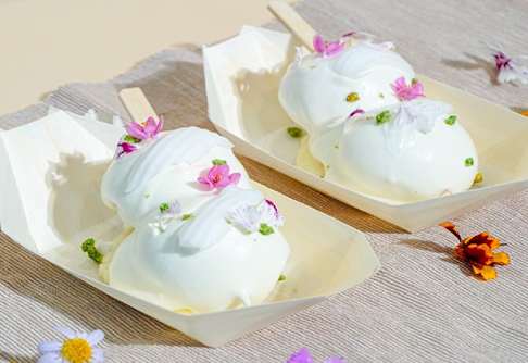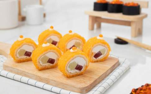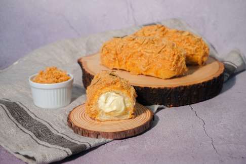 คุกกี้แป้งบางกรอบ จากคุกกี้ลิ้นแมวหรือทูเล ที่ถูกนำมาดัดแปลงม้วนเป็นแท่งสอดไส้ครีมชีสนมสด เข้ากันเป็นอย่างดี