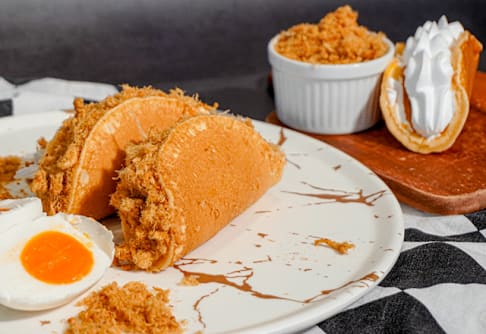 ขนมเบื้องหน้าเค็ม หอมคาราเมล เมนูที่ได้แรงบันดาลใจมาจากวัตถุดิบของไทย รังสรรค์มาเป็นขนมไทย สร้างสรรค์โดยเชฟเบเกอรี่มากประสบการณ์