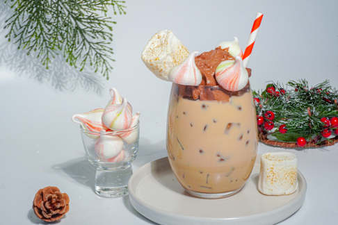 ลาเต้ขิง ทอปด้วยซอฟท์ครีม และขนมปังขิง